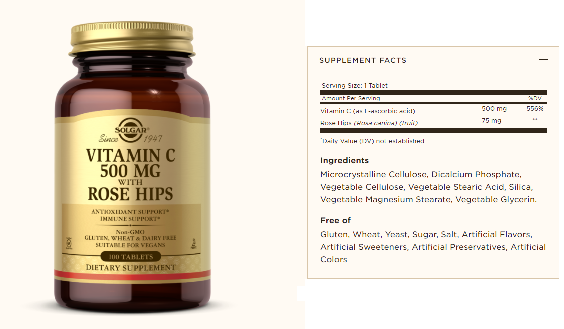 Vitamin C is an essential, water-soluble vitamin which must be obtained through diet or supplementation. It is one of the most potent antioxidant nutrients and plays an essential role in the functioning of white blood cells, which are vital components of the immune system.* Additionally, it aids in collagen (connective tissue) formation, which is important for healthy skin and joints. Vitamin C is beneficial for healthy gums. This formulation provides pure Vitamin C along with Rose Hips fruit.