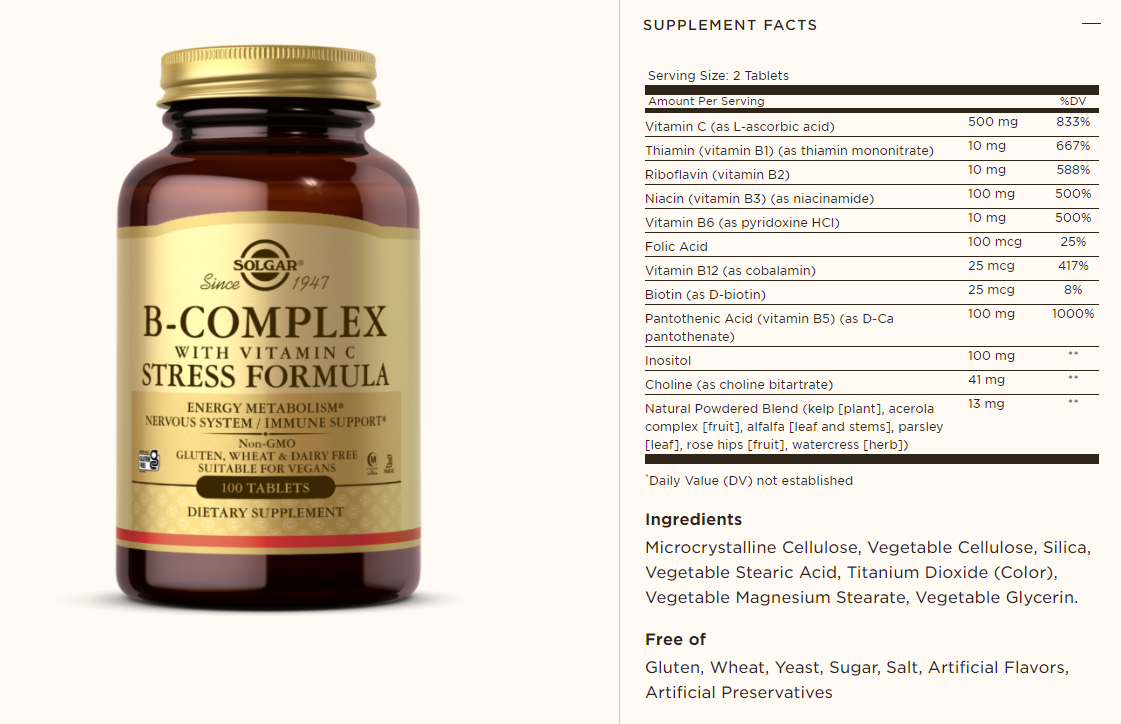 B Complex vitamins are needed for the metabolism of carbohydrates, fats and proteins, which convert food into energy