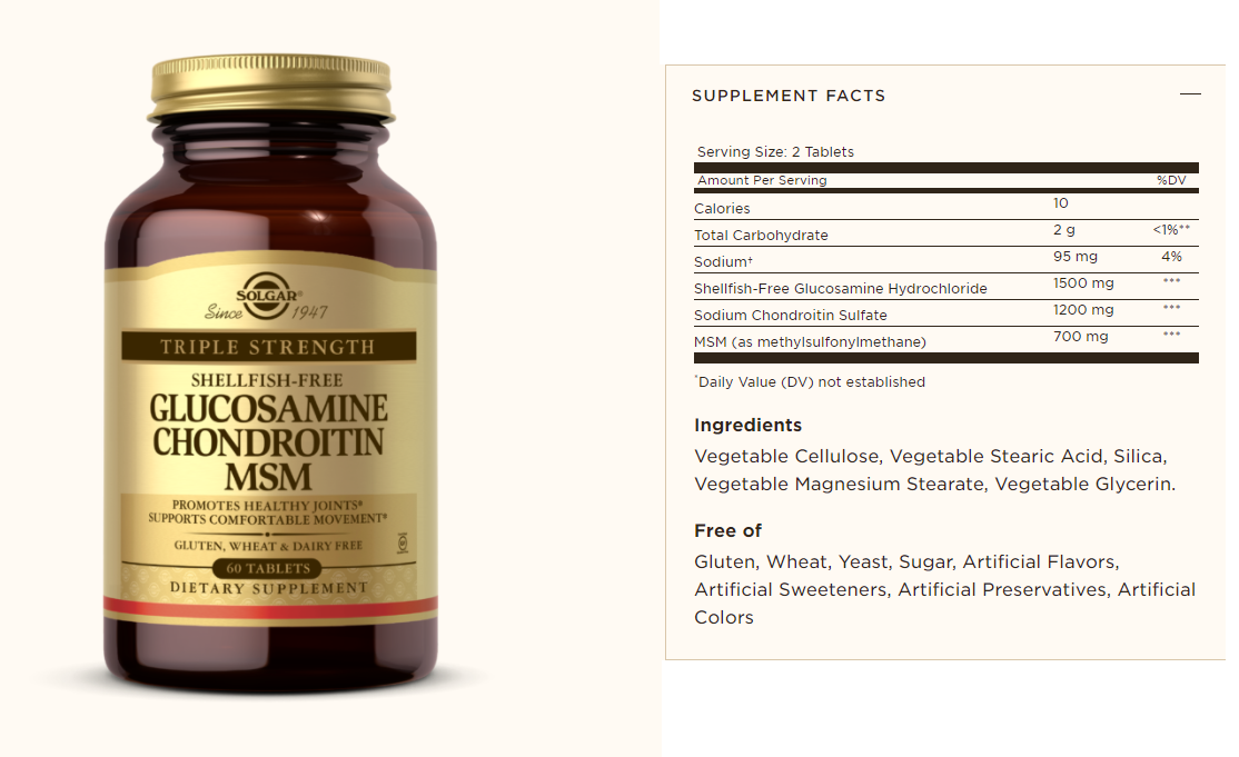 Glucosamine promotes joint health and nutritionally works to promote the structural framework of healthy joints. Glucosamine and Chondroitin both provide the essential structural material glycosaminoglycans which are required for healthy cartilage, promoting mobility, range of motion, flexibility and to ease occasional joint stress due to exercise or physical activity. MSM (Methylsulfonylmethane) provides a naturally occurring, bioavailable source of sulfur.
