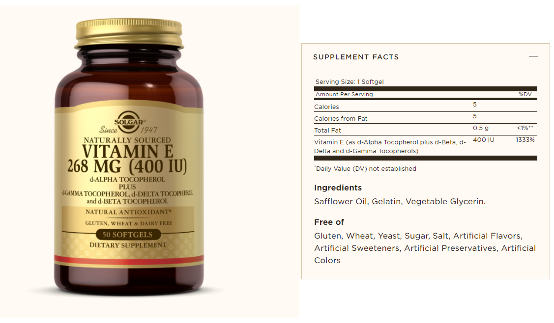 Enjoy vitamin E in its naturally-occurring (found in food) tocopherol forms.